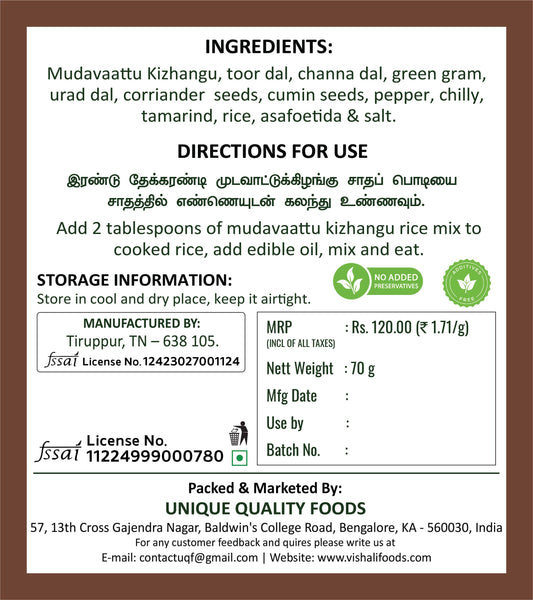 Mudavattu Kizhangu Rice Mix (Arrowroot Rice Mix)