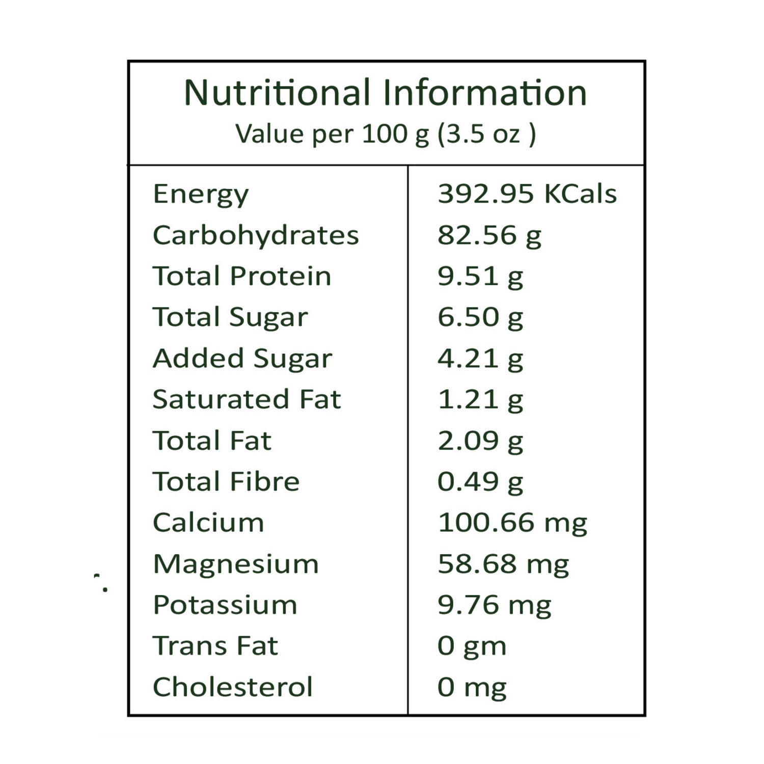 Ragi Choco Malt is a wholesome health drink that delivers both taste and nutrition in every sip. Each 100g serving provides 392.95 Kcals of energy, making it an excellent source of long-lasting fuel for growing kids. With 9.51g of protein and 82.56g of carbohydrates, it supports active growth, energy, and strength. The drink is rich in calcium (100.66mg) for strong bones and teeth, along with magnesium (58.68mg) and potassium (9.76mg) that aid muscle and nerve function. Low in fat (2.09g) and free from trans fat and cholesterol, it’s a guilt-free, nutritious chocolate treat for children.